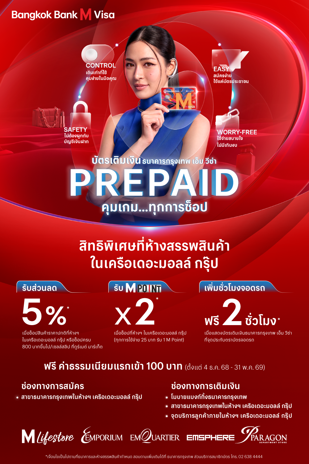 บัตรเติมเงินธนาคารกรุงเทพ เอ็ม วีซ่า คุมเกม…ทุกการช็อป