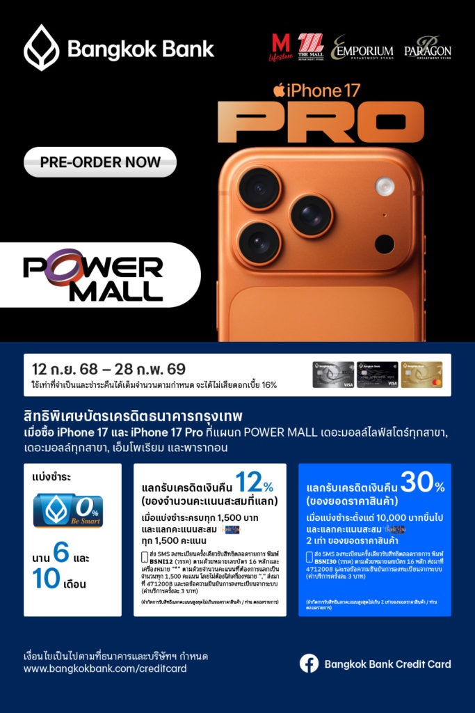 25680916_iPhone17PowerMall_StoreSize_1000x1500 Published on 17 ก.ย. 2568 On iPhone 17 บัตรเครดิตธนาคารกรุงเทพ แลกรับเครดิตเงินคืนสูงสุด 30% Original 1000 × 1500 (PX)