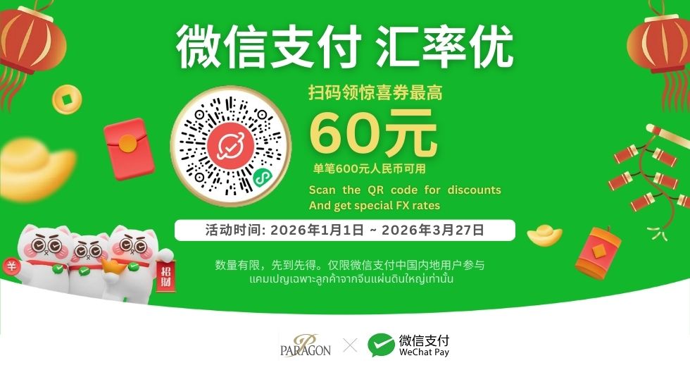 Enjoy exclusive WeChat Pay offers and special exchange rates when shopping at Paragon Department Store.