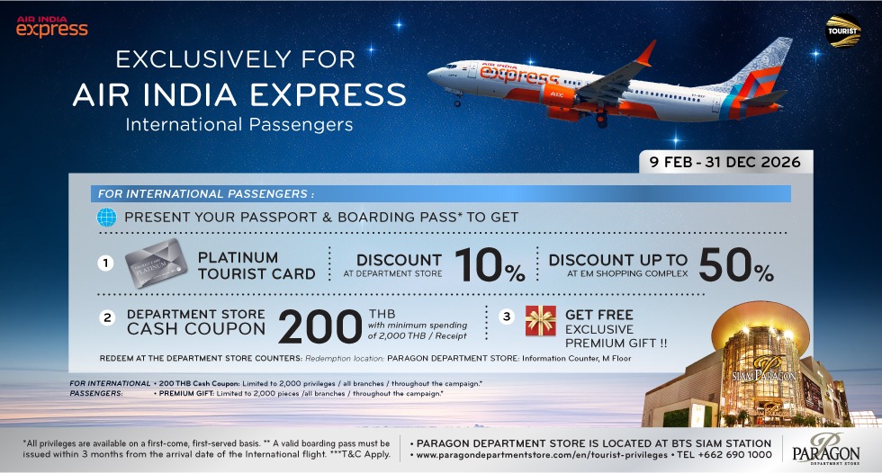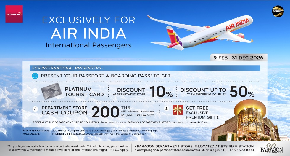 simply present your receipt, passport, and BTS Card to receive a 200 Baht M Cash Coupon at Paragon Department Store.