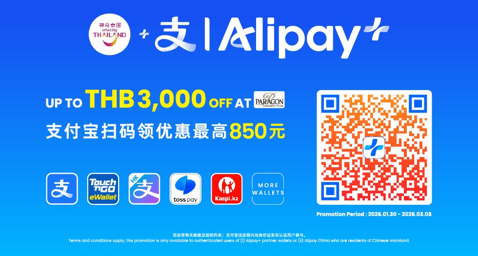 - Scan the QR code to receive coupons worth up to 3,000 THB for Alipay+ users.