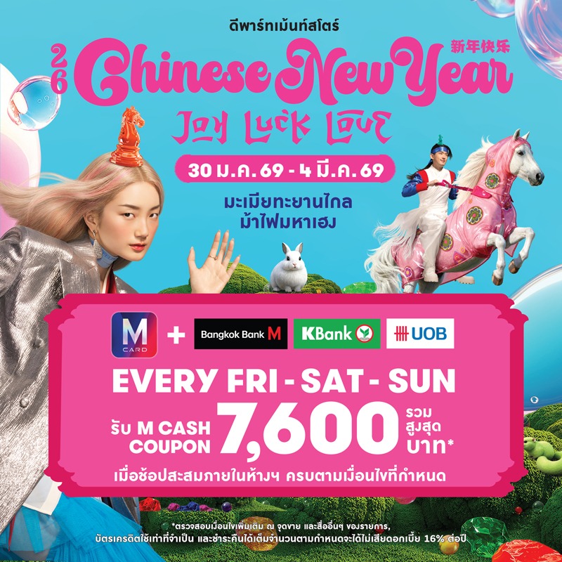ม้าไฟรับทรัพย์ ทุกวันศุกร์ – เสาร์ – อาทิตย์ รับ M CASH COUPON รวมสูงสุด 7,600 บาท*
